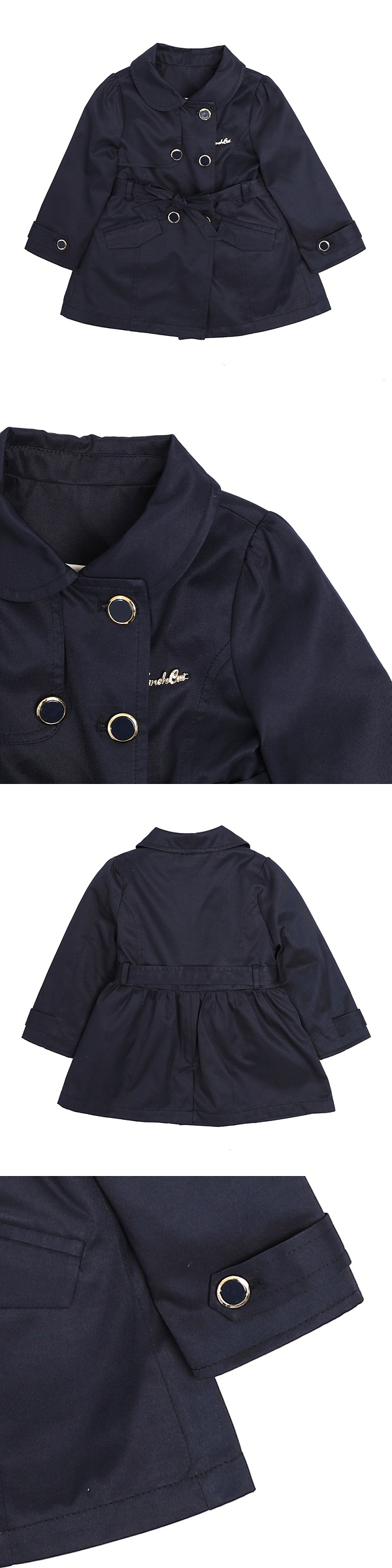 네이비 컬러의 바바리입니다. 허리벨트는 묶는 스타일로 앞, 뒤 어느방향으로 묶어도