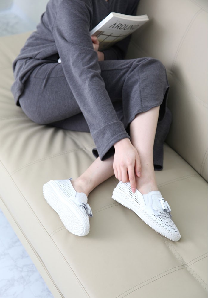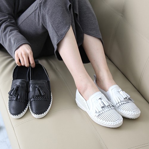 商品名:スリッポン レディース スニーカー フリンジ メッシュ タッセル 2018 春 ファッション 靴 婦人靴