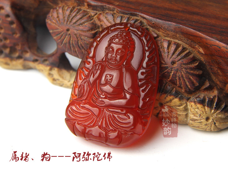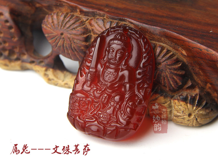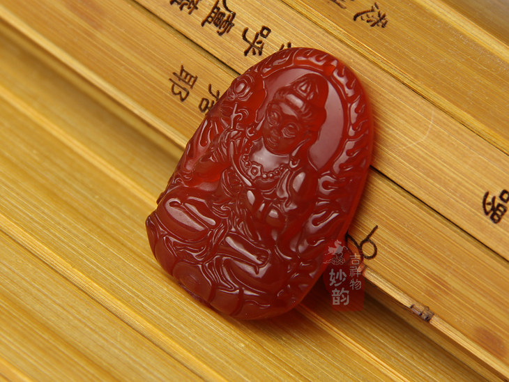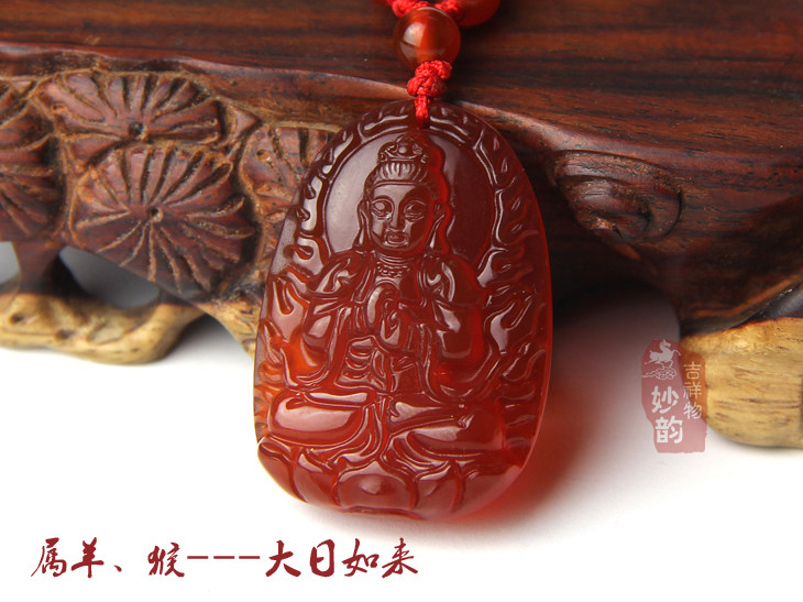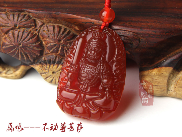 开光红玛瑙大势至菩萨吊坠属马本命佛水晶守护神饰品男女玉坠