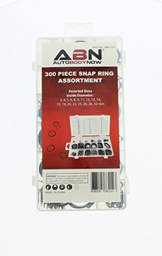 - Snap Ring Assortment, 18 assorted ring sizes: 3, 4, 5, 6, 8, 9, 11, 12, 13,14, 15, 19, 20, 22, 25, 26, 28, 32 mm