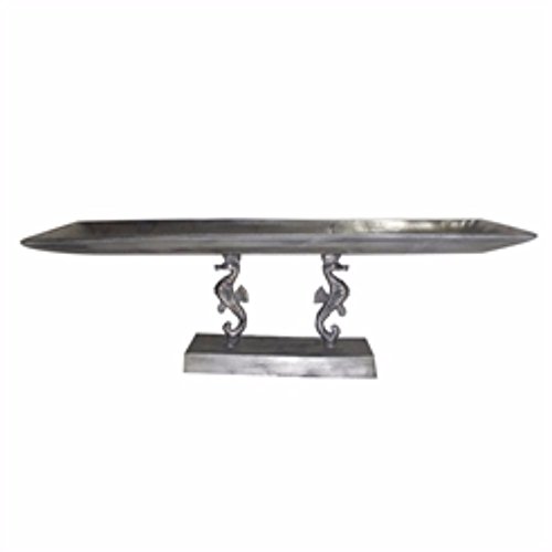 Benzara Aluminum Serving Tray with a Dual-Seahorse Base, Silver
