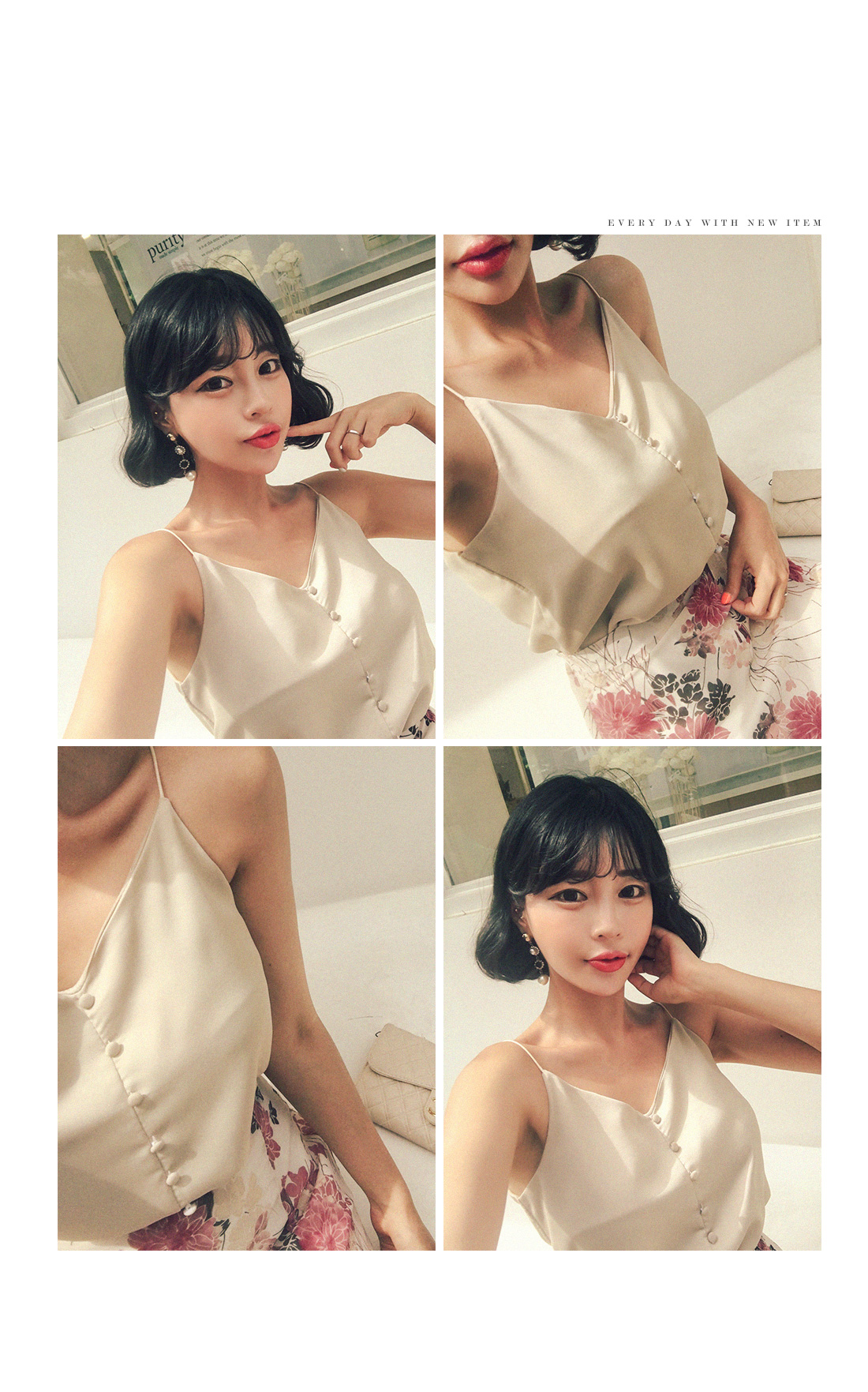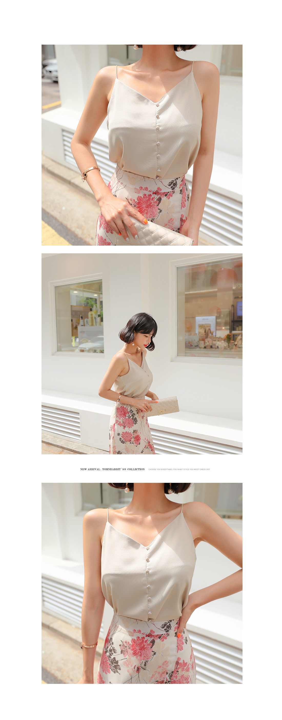 MD COMMENT 심플한 매력의 단추 나시 블라우스를 소개합니다.깔끔하고 심플한 디자인에단추 디테일이 포인트로 더해져세련된 무드를 더한 나시 블라우스 아이템이에요.나시 디자인으로 자켓이나 가디건 속에이너로 연출해도 예쁘게 잘 어울린답니다.다양한 종류의 팬츠, 스커트들과매치하기 좋아 활용도가 높으며브이넥 디자인으로 제작되어 입었을때얼굴 라인을 한층 더 갸름하게 연출해줘요.컬러는 아이보리, 베이지, 블랙, 핑크로 구성되었답니다.COLOR/SIZE 아이보리,베이지,블랙,핑크FREEMODEL FITTING 베이지,아이보리/FREE