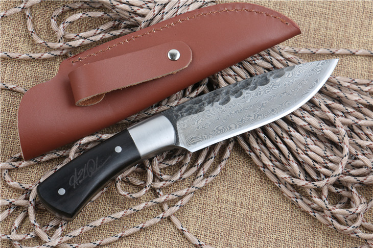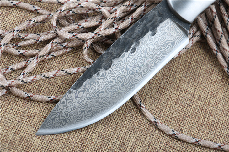 | [해외] 수제 북유럽 직선 나이프 커터 높은 경도 날카로운 칼 패턴 스틸 다마스커스 나이프 야외 캠핑 나이프 |