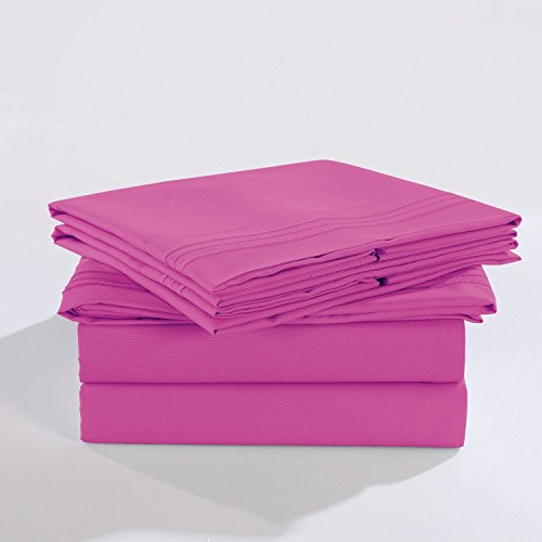Luxury Comfort 2800 Series 3 Line Embroidered Microfiber Wrinkle,Fade Resistant Egyptian Cotton Quality Ultra Soft 4-Piece Bed Sheet Set Queen, Hot Pink (3LN)