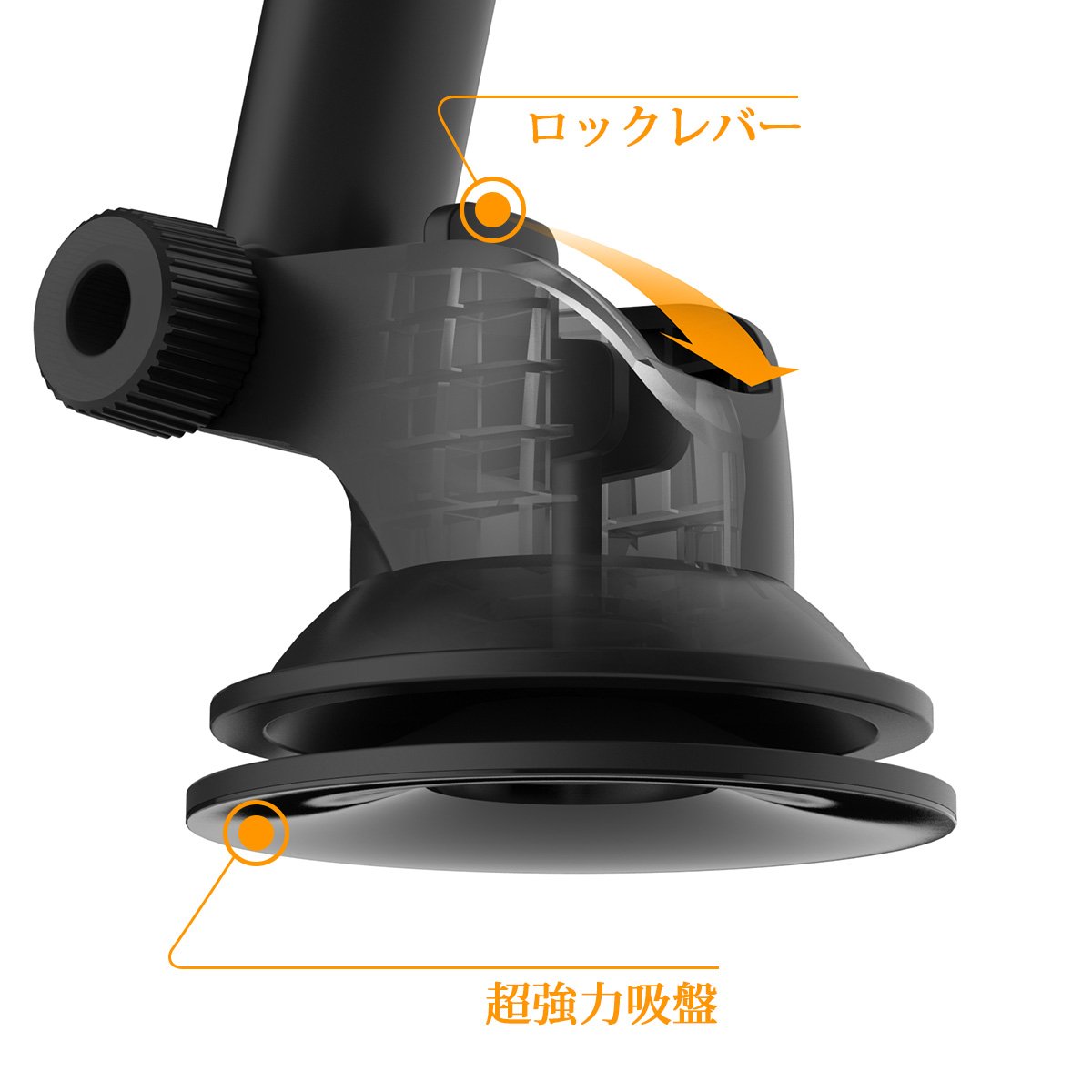 For greater stability, a powerful locking lever provides super strong suction.