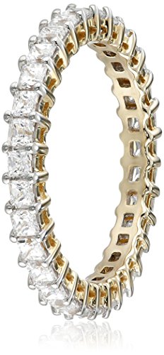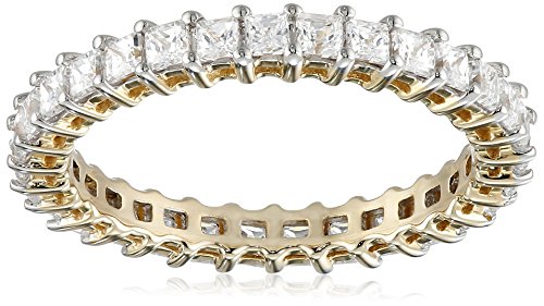 -. Feature : Yellow gold eternity ring featuring P.R.Incess-cut Swarovski zirconia secured in shared-prong settings / Imported