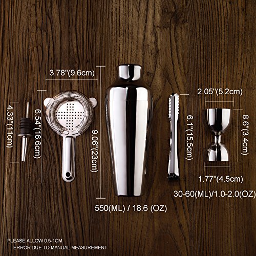 Homestia 칵테일 쉐이커 세트 스테인레스강 멋쟁이 업무용 바 세트 5점입 550ml