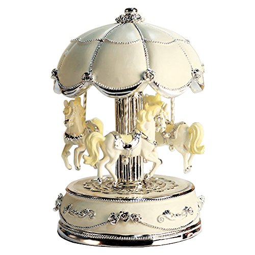 AVESON Luxury Carousel Music Box, Clockwork Mechanism 3-horse Gift For Christmas /Birthday /Valentine's day, Melody Castle in the Sky, Beige