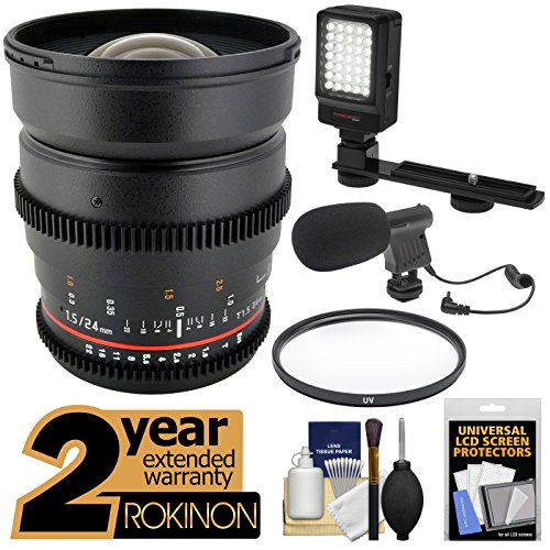 Rokinon 24mm T / 1.5Cine광각 렌즈2년의 Ext.보증+필터+ LED비디오 라이트+마이크 키트for Olympus Micro 4/ 3om-d /펜& Pan
