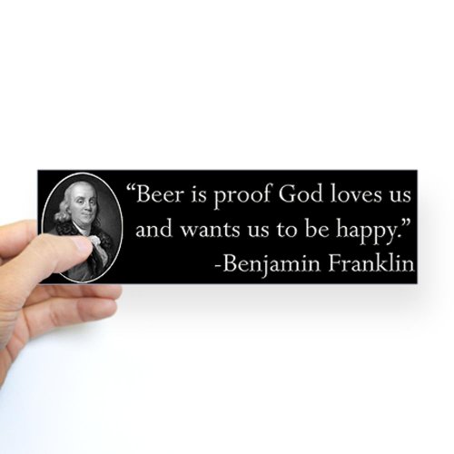 -. Title : CafePress - Ben Franklin Beer Quote Bumper Sticker - 10"x3" Rectangle Bumper Sticker Car Decal