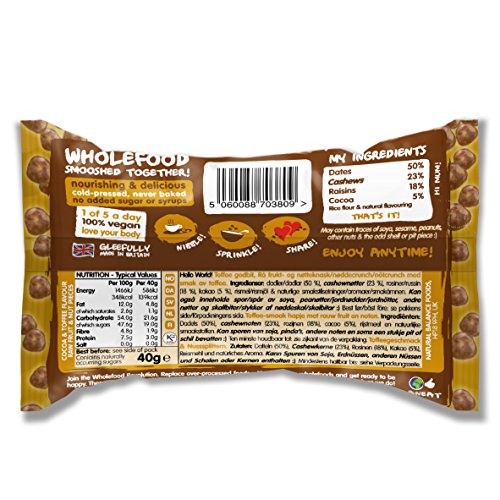 -. Feature : Pack of 8, 100% natural raw fruit and nut snack nibbles and bars / Deliciously simple ingredients / Free from gluten, wheat and dairy with no added sugars or syrups / Perfect for those following a kosher or vegan diet / Low in saturated fats and GM Free
