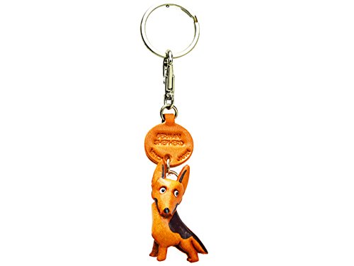 German Shepherd Leather Dog Small Keychain VANCA CRAFT-Collectible Keyring Charm Pendant Made in Japan