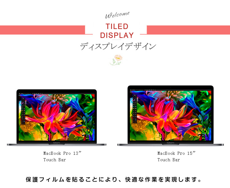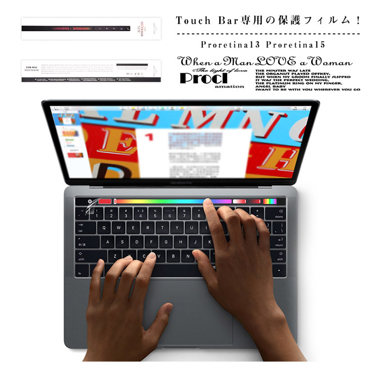 | Touch Bar専用の保護フィルム!保護フィルムを貼ることにより、快適な作業を実現します。指先の皮脂や汚れからTouch Barを守る特徴も合わせ持っています。 | |