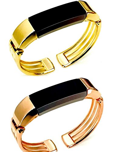 -. Title : BSI Set 2 Metal Bracelets For Fitbit Alta Activity Tracker 1 Gold And 1 Rose Gold Color Combination Unique Design Medium Size 6-7 inches