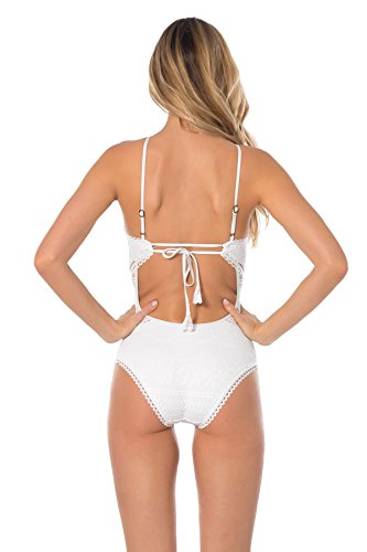 Product Description One piece high neck with removable halter cups, double ric-rac detail, adjustable straps, and adjustable loop tie with tulip tassel at back. 0