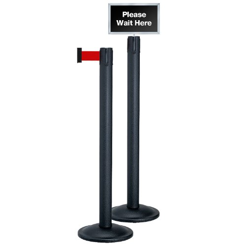 Beltrac Stanchion 2 Post Queue Line Kit, Black Post with 7 foot Red Belt and Sign