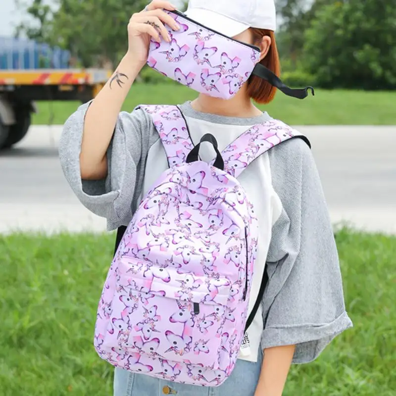 2017 New 2pcs Women Canvas Preppy Chic Printed Backpack Casual School Bag Clutch Bag
