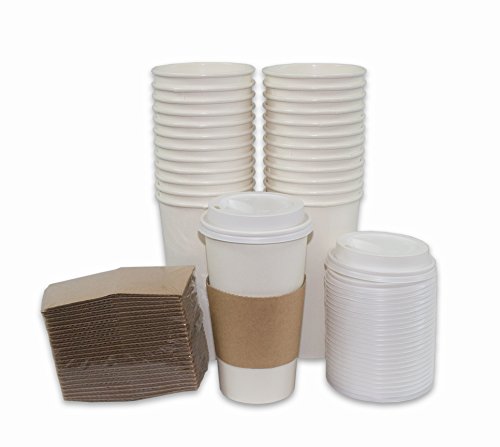 2dayShip White Paper Hot Coffee Cups with Lids and Sleeves, White, 20 Ounces, 25 Count