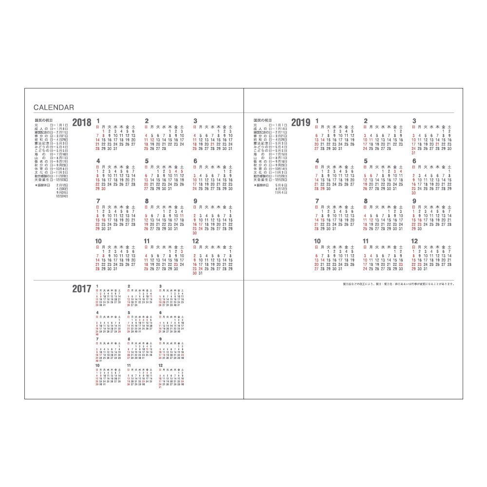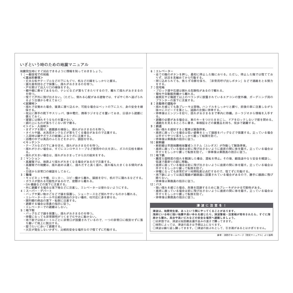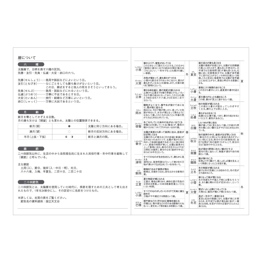 Earthquake manual / stamp tax table / time scale conversion table / paper size list / age quick table / address book / emergency contact address memo / list of counting methods / gifts etiquette / Anniversary of life / About the calendar / emergency