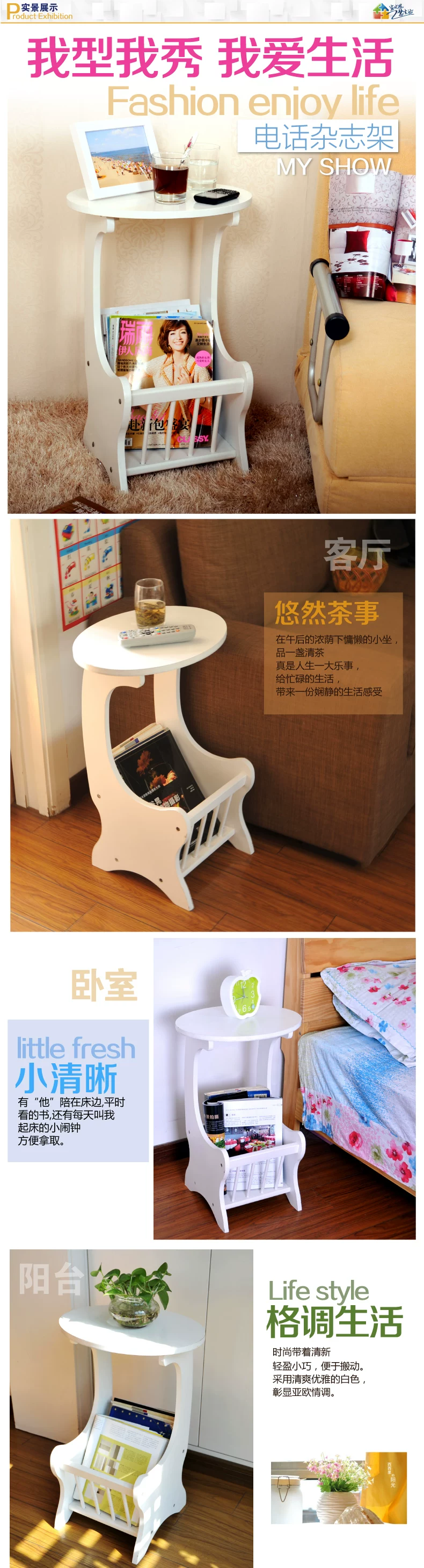 1、杂志架特有的曲线轮廓,不仅时尚创意,还可以默契的贴合沙发、床头角落空间,完美演绎家庭收纳极致,整理架造型简约经典,不同装修风格轻松驾驭。可做沙发边桌,茶几,客厅置物架,放置电话,茶水,酒水,方便拿取,品味悠然生活。