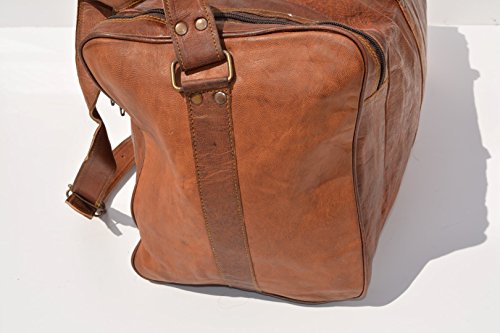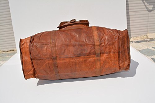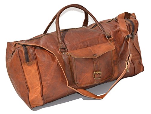 -. Brand : Urban Dezire -. Department : mens -. Feature : SIZE: 24 (long) x 12 (wide) x 10 (deep) / Strong, light-weight goat leather, tanned without the use of chemicals Leather softens and darkens with use Color and texture of the leather varies / Natural real leather smell, just like a luxury car or lounge suite Solid brass buckles and fixtures - will last for years Has a wonderful natural look, and feel Each bag is uniquely individual due to slight color and marking variations on natural leather -. ProductGroup : Apparel -. ProductTypeName : LAGE -. Title : Duffel Bag Genuine Vintage Brown Leather Goat hide 24" Travel Lage bag