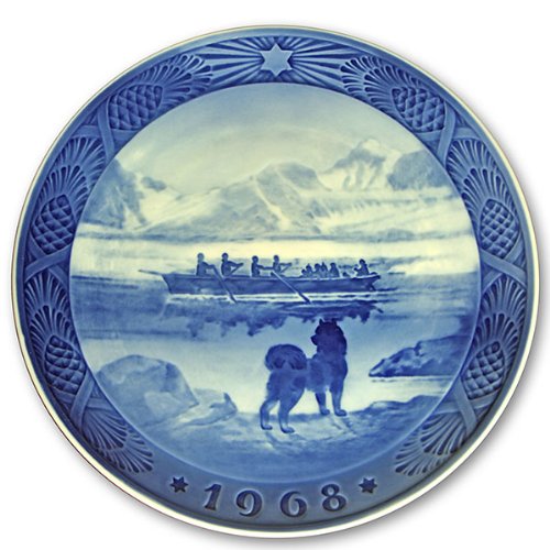 ROYAL COPENHAGEN 1968 Porcelin Christmas Plate - The Last Umiak