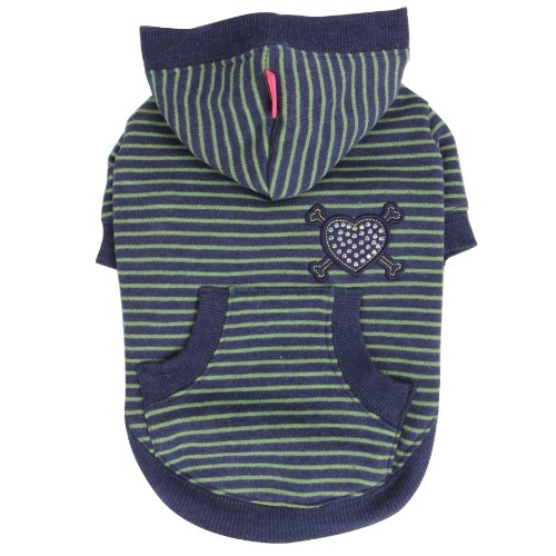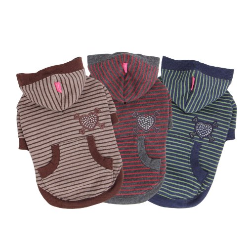 -. Feature : Features a stripe and solid scheme / Hooded shirt with heart and crossbones applique / 100-Percent cotton / Available in brown, grey, and navy in sizes S to XXL / Size: medium - 11-inch neck girth, 14 1/2-inch chest girth