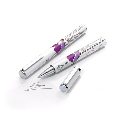 -. Feature : The design is of purple poppies / Cap has an inside thread that screws onto the end of the pen / Clear contour of the pen lays perfectly balanced in the hand of the writer / Stainless steel tip with ceramic ball guarantees smudge free writing / Metal rollerball pen includes two Troika 5888 rollerball refills