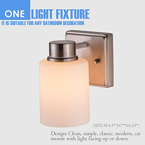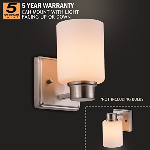 Sunnyfair 1 Bulb Vanity Lamp Shade Wall Light Fixture Brushed Nickel with White Glass Bathroom Bedroom fits E26,UL listed