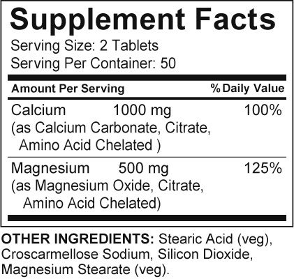 A high potency formulation of calcium and magnesium in a 2:1 ratio for optimal effectiveness. Calcium is considered the "backbone" mineral because of its role in the formation of skeleton and teeth. Magnesium is called the "natural tranquilizer" due to its relaxing action on nerves and muscles. Both minerals require each other for best absorption and utilization.* Plays a vital role in helping to achieve peak bone mass in women and young adults.Feature