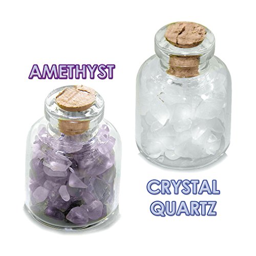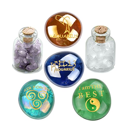 Ancient Zodiac Aquarius Yin Yang Powers Birthstones Amethyst Quartz Magical Glass Stones Bottles Set