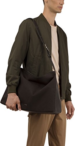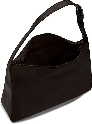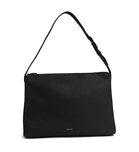 Large over the shoulder bag that can be worn crossbody with adjustable strap. Top zipper closure with side panel accents. INTERIOR:zipper pocket, smartphone pocket, logoembossed Dwell tag. 100% recycled nylon lining.Feature