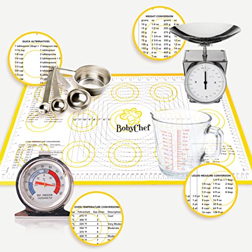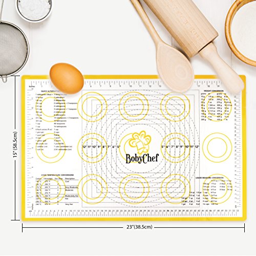 - SAVE TIME AND EFFORT: The BobyChef silicone baking mats features printed conversion charts that will help you effortlessly convert temperature, weight and liquid measurements! No more maths for you! You will have everything ready at a glance!
