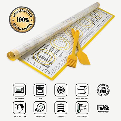 - MAKE HEALTHY FOOD AND TASTY DESSERTS EFFORTLESSLY: This top quality baking mat is a must have for every kitchen enthusiast! Now, you can make delicious homemade pizza, bread, cookies and pastry without using extra greasing agents.