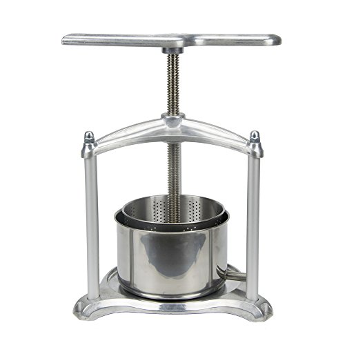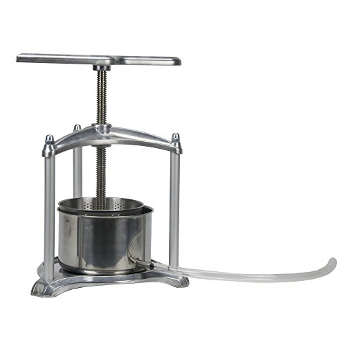 EJWOX 0.8 gallon aluminum wine or soft fruit press is ideal for pressing small soft fruits such as grapes, cherries, tomatoes, and berries. This 3 liter attractive fruit press is offered at an unbeatable price. Made from painted steel, the press features a removable straining basket that can be taken out for cleaning, and a wide stance for better stability. The fruit press has an extension tube for easy draining. You can make a lot of DIY juice at home with fun. You can also use it to press cheese with a filter bag. Product Details and Features Brand Name: EJWOX Style No.: 1114 Colors: Silver Product size: 12.6x11.8x14.6 inches weight:9.24lbs material: aluminum and stainless steel FILTER BAGS not included. Care Guide 1. Fruits need to be pulped before usage. 2. Please ensure that central spindle is fully tightened at all times. 3. Clean the press after completing your work with pressure washer hose and brush. 4. All moving parts should be lubricated regularly using food oil. 0 |