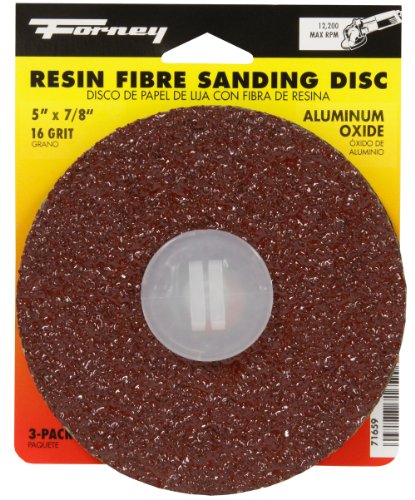 Forney 71659 Sanding Discs, Aluminum Oxide with 7/8-Inch Arbor, 5-Inch, 16-Grit, 3-Pack