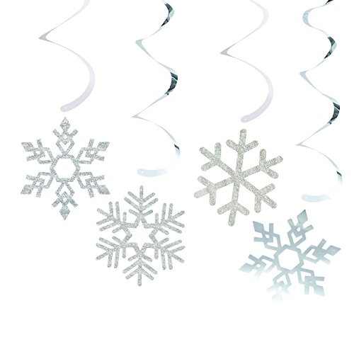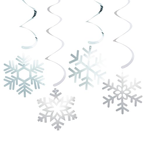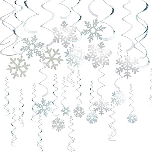 SNOWFLAKE SWIRLS: This set features 30 pieces of winter snowflake-themed hanging Christmas foil decorations. Each hanging decoration is made from 355 gsm cardstock.