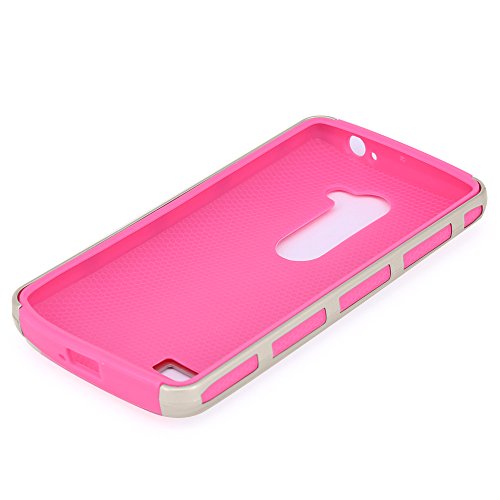 LG Leon Case, LG Tribute 2 Case, LK [Shock Absorbent] Dual Layer Hybrid Armor Defender Rugged Hard Protective Case Cover For LG Leon / LG Tribute 2, Gold / Hot Pink