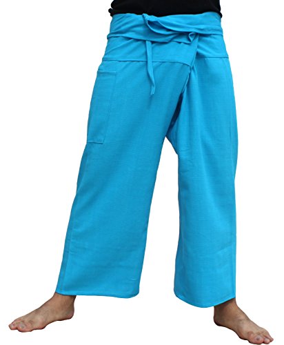 RaanPahMuang Brand Plain Thick Line Cotton Thai Fisherman Wrap Tall Length Pants