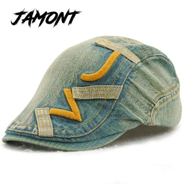 | [해외][JAMONT] 면 Gorras Planas 남성 베레모 골프 운전 태양 플랫 캡 모자 여성 커플 고글 데님 Casquette Boina Masculina |