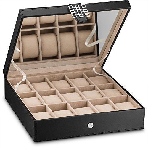 15 LARGE COMPARTMENTS- Each watch cushion holds a small or large watch neatly in place. There is plenty of space between the lid and cushions to accommodate watches of all size.