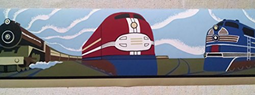 Trains Wallpaper Border – Art Deco - Railfans- Bright…
