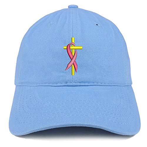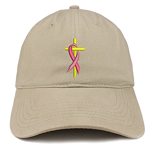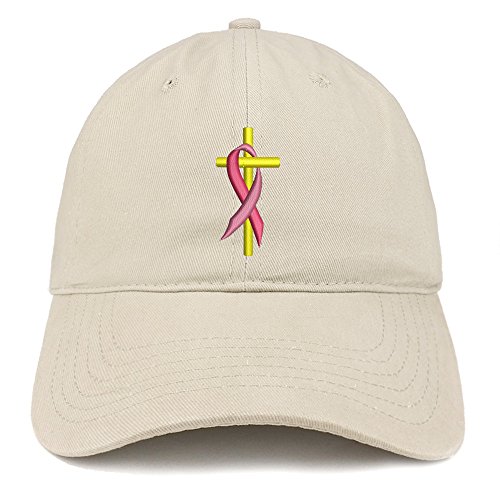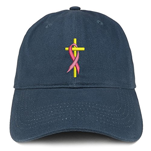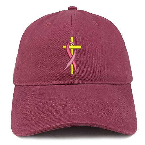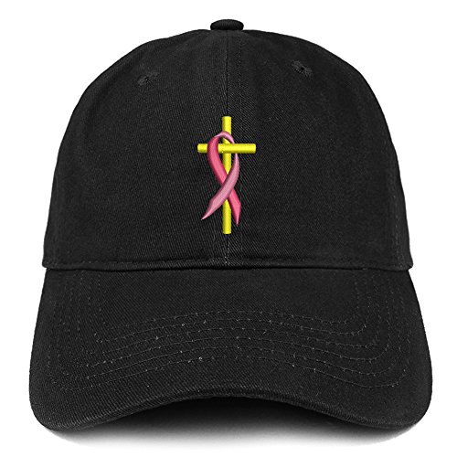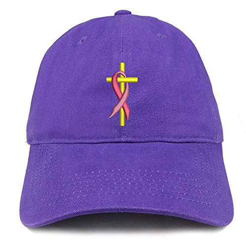| (Trendy Apparel Shop)/Accessories/Hats/DIRECT FROM USA/Trendy Apparel Shop Cancer Ribbon On Cross Embroidered Brushed Cotton Dad Hat Ball Cap |