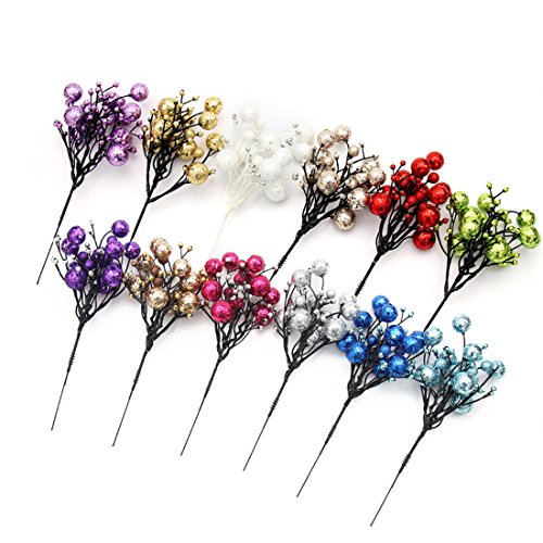 ZJCilected 8.7-Inch Glittery Artificial Berry Picks for Christmas Tree Wreath Garland Decorations(1 Piece, Dark Purple)
