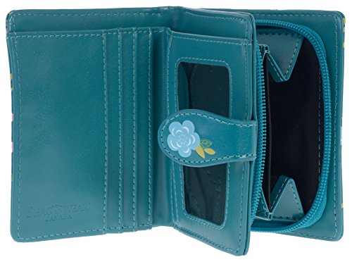 Binding : Apparel Product Description This wonderfully designed wallet features 5 card slots, plus a bonus clear ID holder. The exterior closure features a magnetic snap button, ensuring your wallet stays closed and secure. Interior is complete with a zippered change compartment. This beautiful and unique wallet will keep you looking good and your money secure. Wallet size closed; 4.5 X 3.75 X 0.75 Inches. Famous Shagwear Brand 0