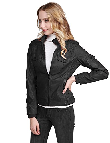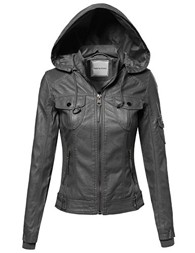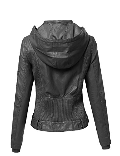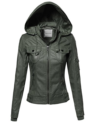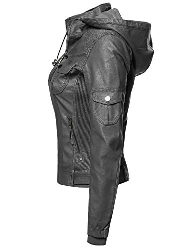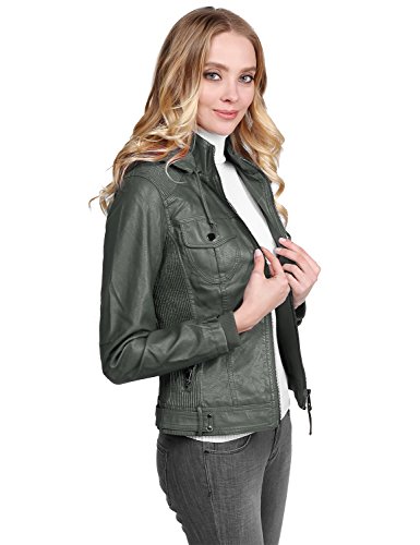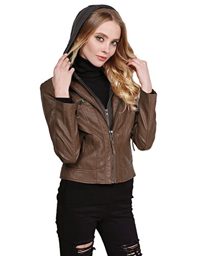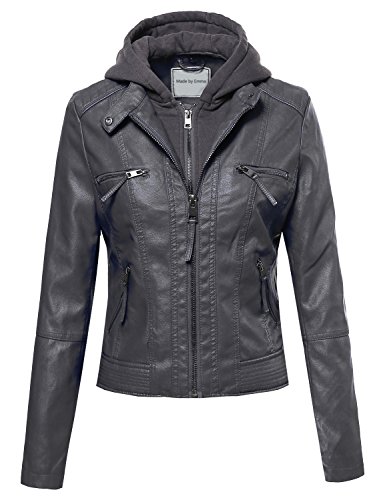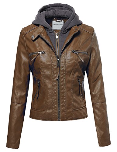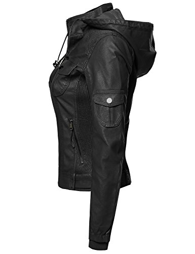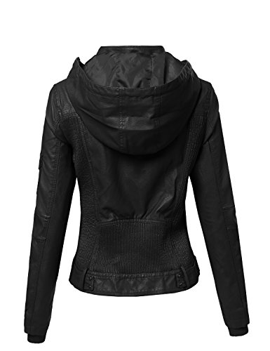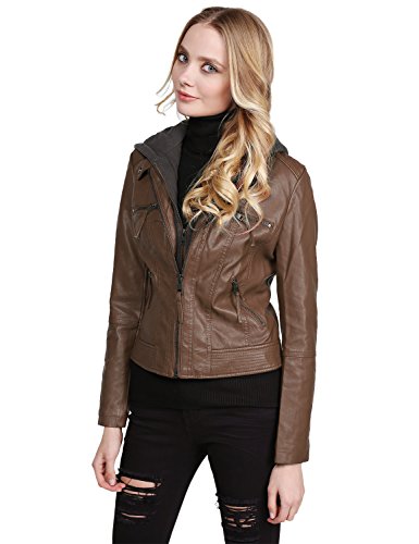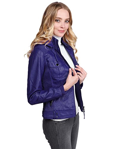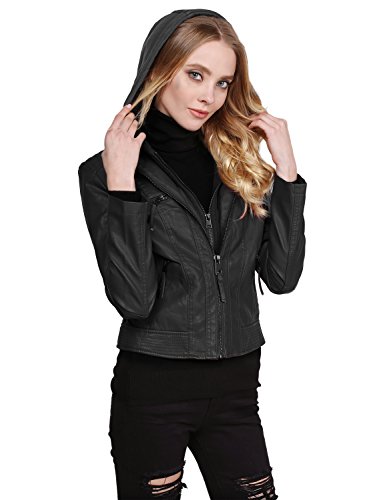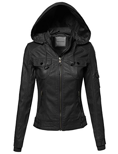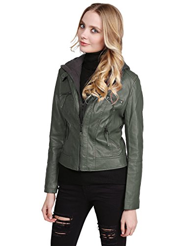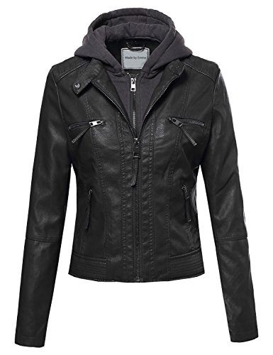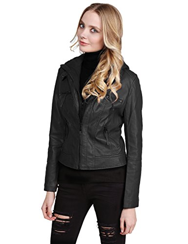 | MBE Women's Faux Leather Rider Jacket With Detachable Hood |