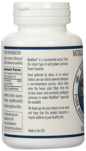 -. Binding : Health and Beauty -. Brand : Pacific Standard Distributors -. EAN : 0654942000019 -. Feature : Harvested from clean, cold waters of the North Pacific, near Siberia / Potent kombu extract is 40 X more concentrated than raw seaweed -. IsAdultProduct : 0 -. Label : Pacific Standard Distributors -. LegalDisclaimer : These statements have not been evaluated by the FDA. -. Manufacturer : Pacific Standard Distributors -. Model : PSD100 -. MPN : MOD000019 -. NumberOfItems : 1 -. PackageQuantity : 1 -. PartNumber : MOD000019 -. ProductGroup : Health and Beauty -. ProductTypeName : HEALTH_PERSONAL_CARE -. Publisher : Pacific Standard Distributors -. Studio : Pacific Standard Distributors -. Title : MODIFILAN 90 CAPS -. UPC : 654942000019