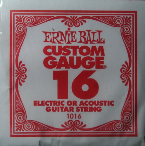 Product Description Made of specially tempered tin plated high carbon steel, the EB1016 Single Plain Steel String is used on electric and acoustic guitars. Ernie Ball revolutionized the market by offering guitarists Custom-Gauge single strings. 0