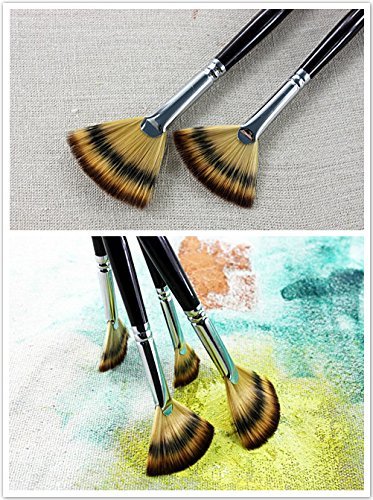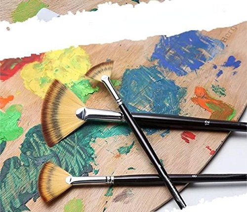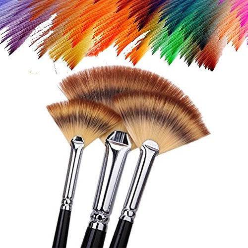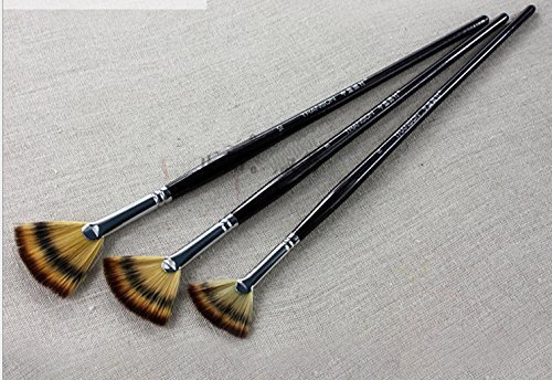 Paint Brush Set Artist Fan Painting Brushes Wood Long Hands for Oil Acrylic Watercolor 3 Pcs