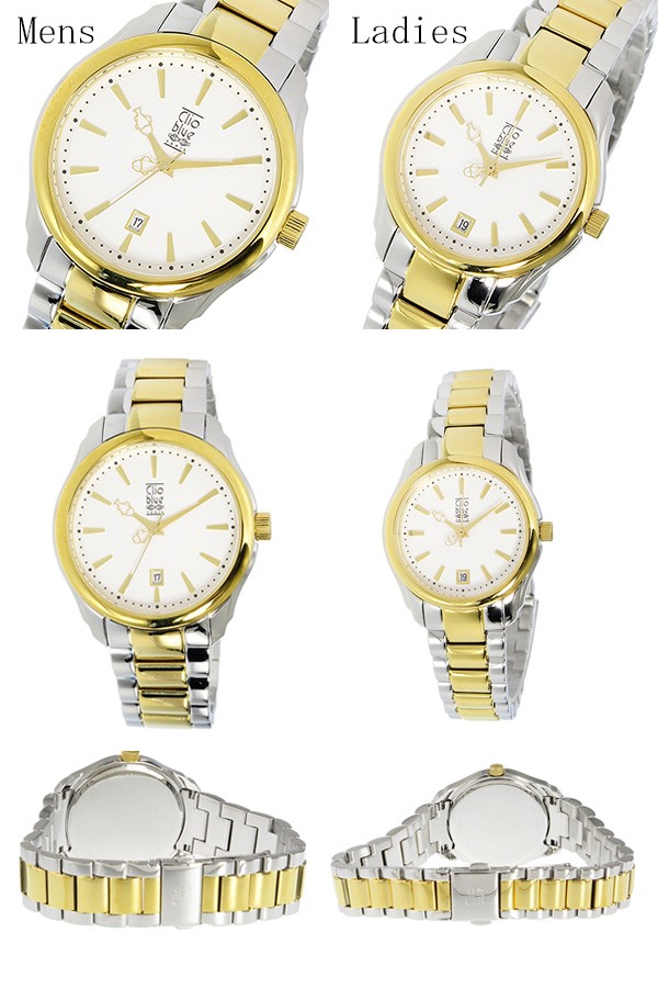 クオーツ、日常生活防水、日付カレンダー、カラー:ホワイト(文字盤)、ゴールド/シルバー(ベルト)